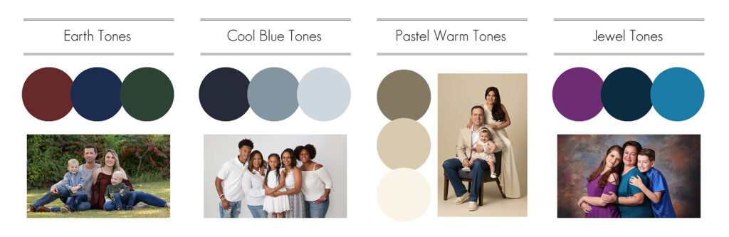 T-Shirts with graphics or wording as they may distract and not be fully seen during posing. Keep it solid and simple for something timeless